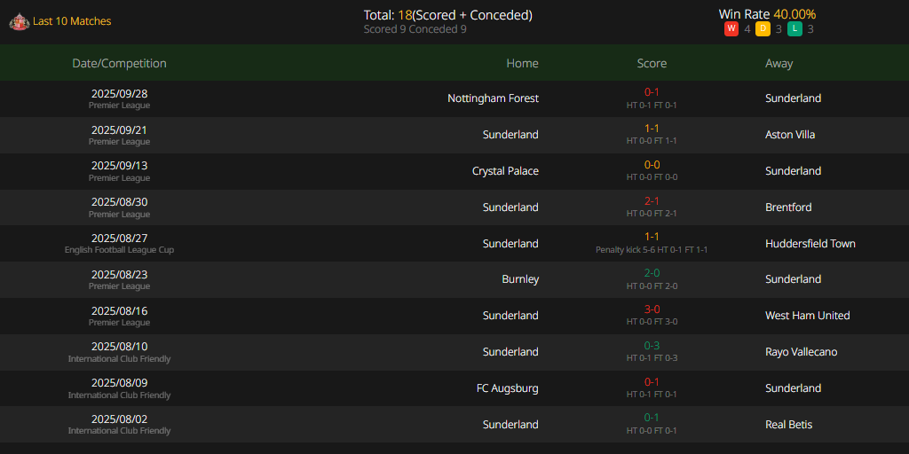 As a newly-promoted side, Sunderland has made a surprising start to this season—with 3 wins, 2 draws, and 1 loss after 6 rounds, they are ranked 5th in the standings. However, a closer look at their schedule shows that Sunderland has not yet faced any of the traditional "Big Six" teams, and this away match against Manchester United will be their first real test. Undoubtedly, Sunderland had a very successful transfer window this summer, and the return of Premier League veteran Gareth Southgate has been a key factor—all of the team's last 3 goals have come from his assists. The player also provided an assist in his last match against Manchester United (during his time at Arsenal). Nevertheless, Sunderland's historical record against Manchester United is not ideal—they have only managed 1 win, 9 draws, and 21 losses in their past 31 away matches against Manchester United. Since the establishment of the Premier League, they have played 29 away matches against the Manchester duo, winning only 1, with an average of just 0.24 points per game, making them the team with the worst record among all sides that have played away against the Manchester duo. Even though Sunderland is in better form recently, their top priority in this match should be to get away with a draw.