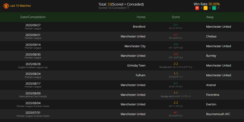 In terms of the overall performance this season, the future of head coach Rúben Amorim at Manchester United has been cast into significant doubt. His insistence on using a three-centre-back formation and deploying his fellow Portuguese countryman Bruno Fernandes as a defensive midfielder, among other decisions, has plunged the team into trouble. Previously, it was expected that the team would bounce back after defeating Chelsea in the previous round, but in the last match against Watford, all the weaknesses in the defensive end were fully exposed—they were repeatedly caught out by the opponent's through balls, leaving the goal under constant threat. The poor defensive system has resulted in the team failing to keep a clean sheet in any of the first 6 league matches. However, after a major revamp of the forward line this summer, Manchester United's attack has indeed improved, as evidenced by their expected goals (xG) of 12.21, ranking first in the league. After Jadon Sancho opened his goal account, it remains to be seen whether he can maintain his scoring momentum. With both strengths and weaknesses coexisting, it will not be easy for Manchester United to secure all 3 points in this round; a prudent strategy should be to focus on avoiding defeat at home.