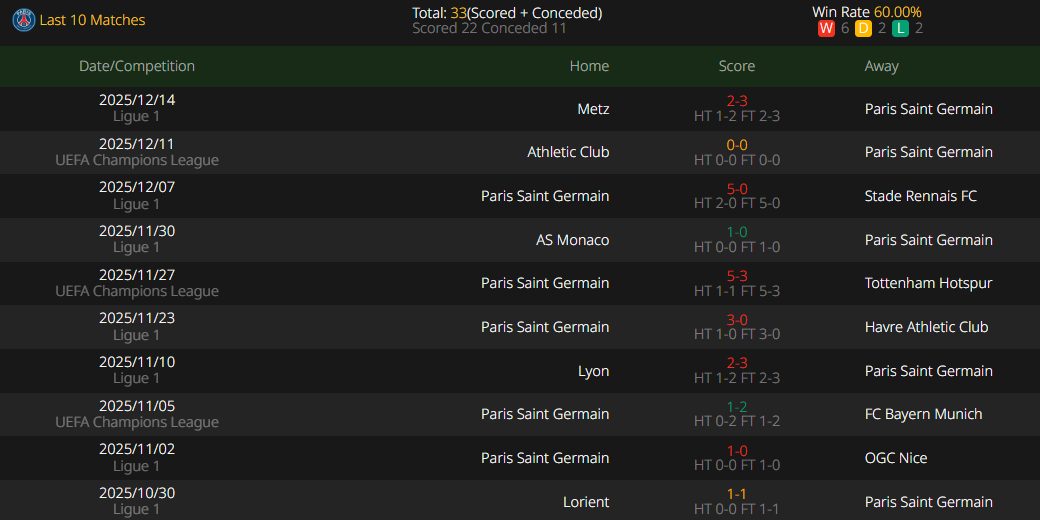 1.PSG Chases Historic Sextuple: PSG has swept through multiple competitions this season, including Ligue 1, Coupe de France and UEFA Champions League. The only blemish came in a defeat to Chelsea in the FIFA Club World Cup final, as the club now sets its sights on the historic target of a sextuple. Their strength lies in the diversity and depth of their attacking line-up; with efficient possession play and quick counterattacks, they average more than 2.5 goals per game, demonstrating the team's overall dominance