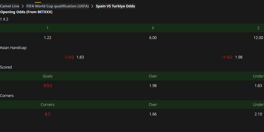 This is a battle for the top spot in the group, and Spain will undoubtedly take control of the game. They have kept clean sheets against Turkey with big scores in their last 2 encounters, especially winning 6-0 away in the first round of the group stage, giving them a significant psychological advantage. In terms of Asian Handicap, the initial line opened with Spain as -1.75 favorites, and the market has continued to rise to -2.25, showing obvious and firm support for Spain. Comprehensive analysis of this match shows that with the current market support, Spain is very likely to secure another big victory.