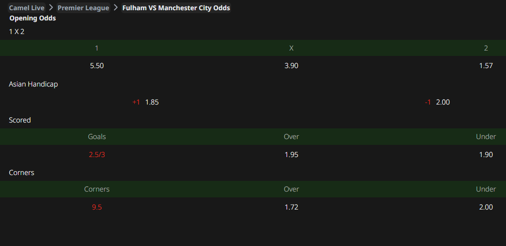 The Asian Handicap opened at Manchester City -0.75 and has remained stable, reflecting strong public confidence that the 2nd-placed Citizens will dominate proceedings. Looking at the teams' recent offensive and defensive data, City score over 2 goals per game and have won all their last 10 encounters against Fulham. Despite playing away, Manchester City are unlikely to face significant resistance at Craven Cottage. Therefore,Manchester City favored to claim all three points on the game.